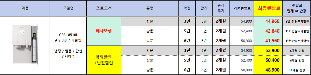 | 렌탈료 | 월 48,900원 (6년(6년의무)) |