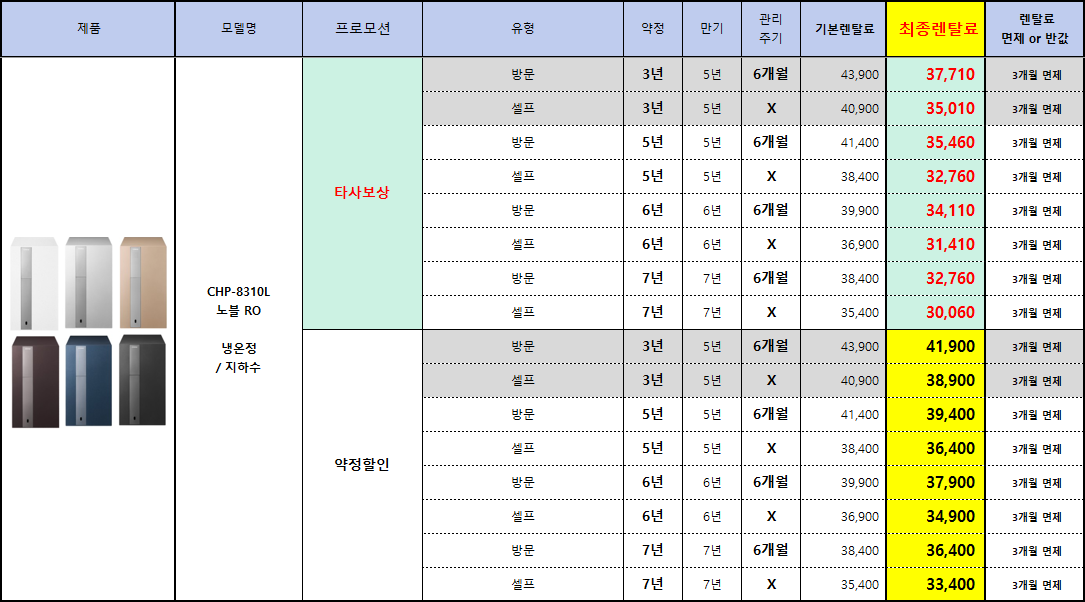 | 렌탈료 | 월 36,400원 (7년(7년의무)) |